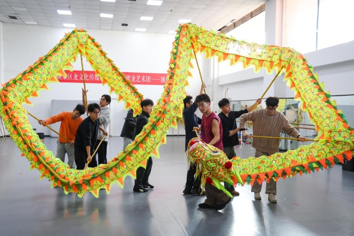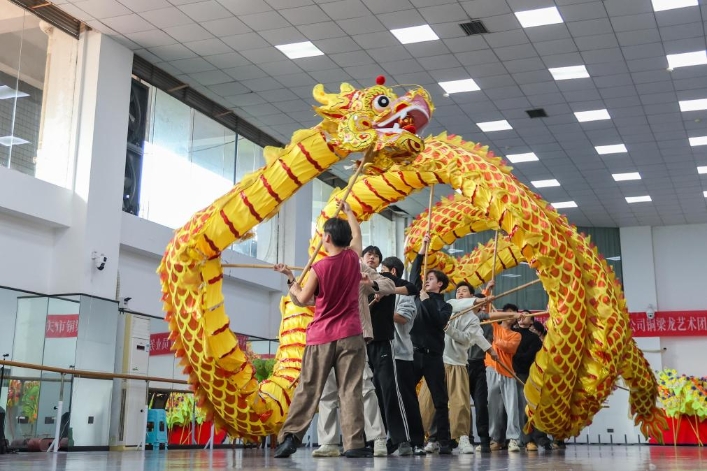 “很多高難度動作我都是第一次接觸,需要反復琢磨很久,才能把它學會?!闭劶皠側雸F的經歷,今年25歲的魏燁直言道。經過刻苦訓練,魏燁如今已能和隊友們一起在旋轉騰挪間將龍舞得流暢靈動。